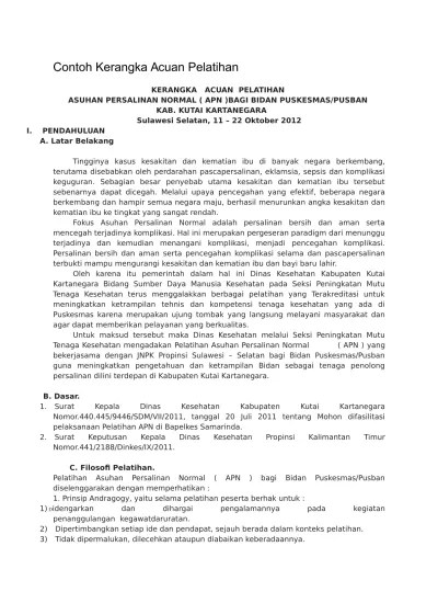 Tujuannya, agar bidan yang mengikuti pelatihan bisa memiliki kompetensi . Pelatihan asuhan persalinan normal yaitu training mengenai pencegahan. Tanpa menginap di hotel, seminar kit, sertifikat, dan foto bersama yang . Jaringan nasional pelatihan klinik kesehatan reproduksi. It seems we can't find what you're looking for.